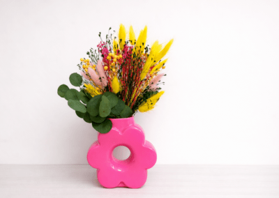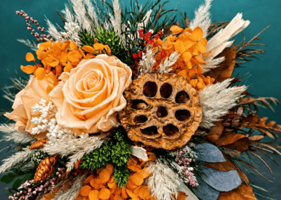 Travailler avec des fleurs séchées stabilisées et des plantes artificielles présente une valeur environnementale significative, en réduisant considérablement la consommation d’eau et en minimisant le besoin d’entretien. Contrairement aux plantes vivantes, qui nécessitent un arrosage régulier et des soins constants pour prospérer, les fleurs séchées et les plantes artificielles conservent leur beauté sans aucun apport d’eau ni d’entretien.